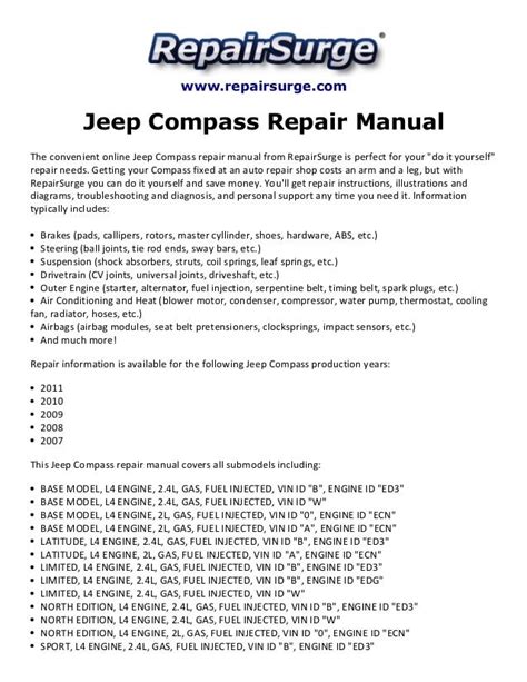 Read Online JEEP COMPASS REPAIR MANUAL DOWNLOAD mobipocket BookBoon